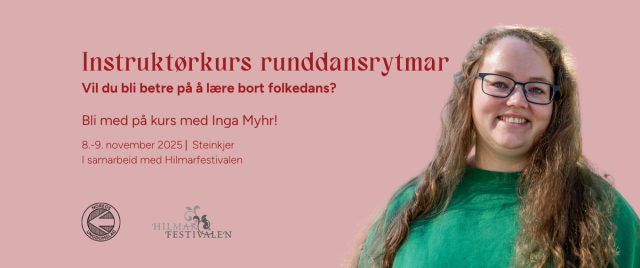 Bli med på instruktørkurs i folkedans med fokus på runddansrytmar 8.-9. november 2025 i Steinkjer. Kurset skjer i samarbeid med og parallelt med Hilmarfestivalen og HilmarUng. På kveldstid kan du gå på konsertar og dansefest i regi av Hilmarfestivalen. Alle kursdeltakarar får tilbod om gode prisar på festivalen.