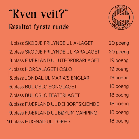 Resultat etter fyrste runde av "kven veit?"